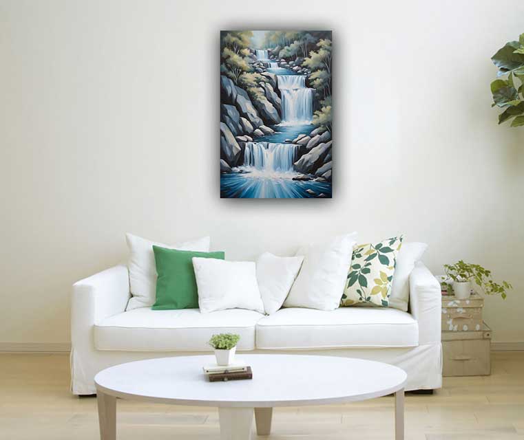 Discover the serene beauty of a cascading waterfall with this painting designed for the North direction. Boost prosperity and financial growth with this Vastu-compliant artwork. Perfect for home or office decor.