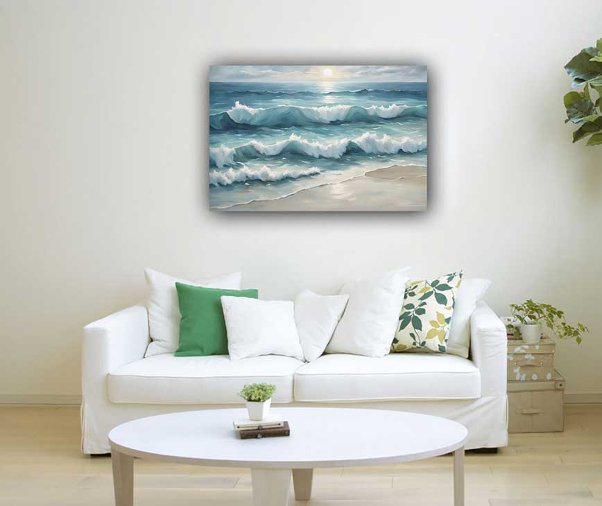 Enhance financial growth and career opportunities with a Serene Ocean Painting in the North direction. Perfect Vastu artwork for homes and offices, promoting success and prosperity.