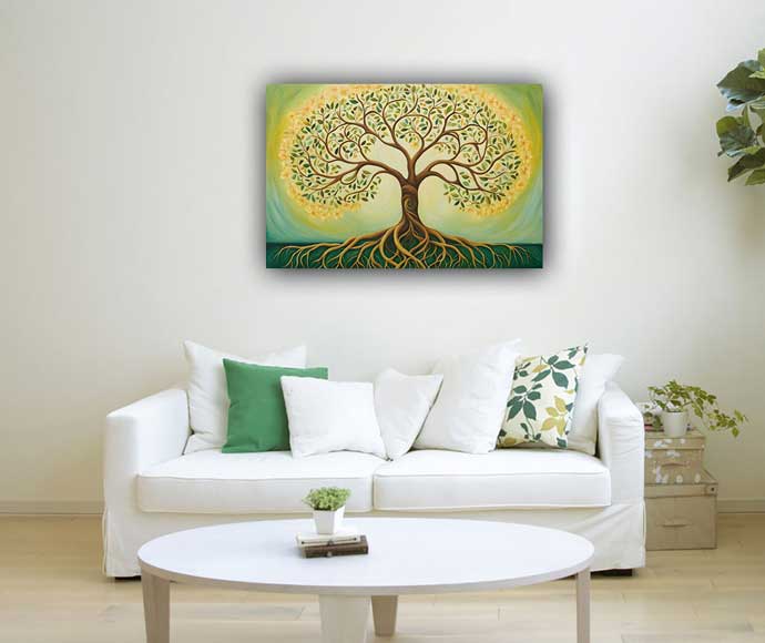Discover the "Tree of Life" artwork with -like roots and golden flowers, designed to enhance social connections and harmony in the East direction. Perfect for promoting balance, growth, and meaningful relationships as per Vastu.