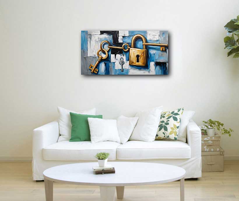 Enhance your career growth and success with a golden lock and key painting, designed for the North direction. This Vastu-inspired artwork symbolizes opportunity, prosperity, and unlocking your true potential for professional achievements.