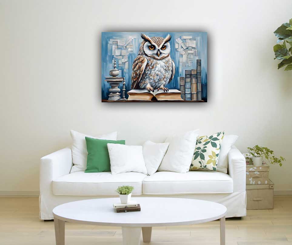 Wise Owl Wall Painting Canvas Art of Owl for Wisdom & Knowledge