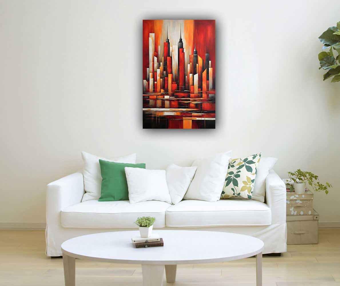 Enhance your space with this abstract art of a skyline, designed to bring fame, recognition, and success. Perfectly aligned with Vastu for the South direction, this piece fosters growth and career prominence.