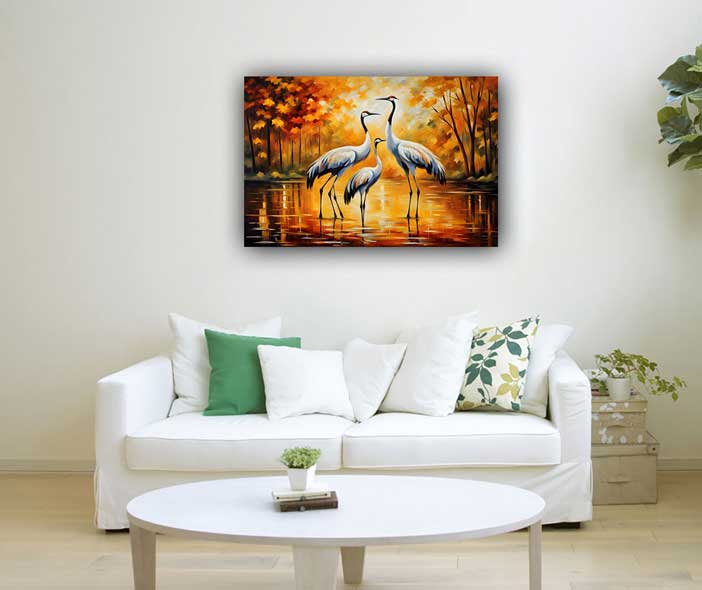 Enhance family harmony and relationships with this Family of Cranes Painting. Perfect for placement in the southwest direction to bring unity, love, and positive energy to your home according to Vastu Shastra.