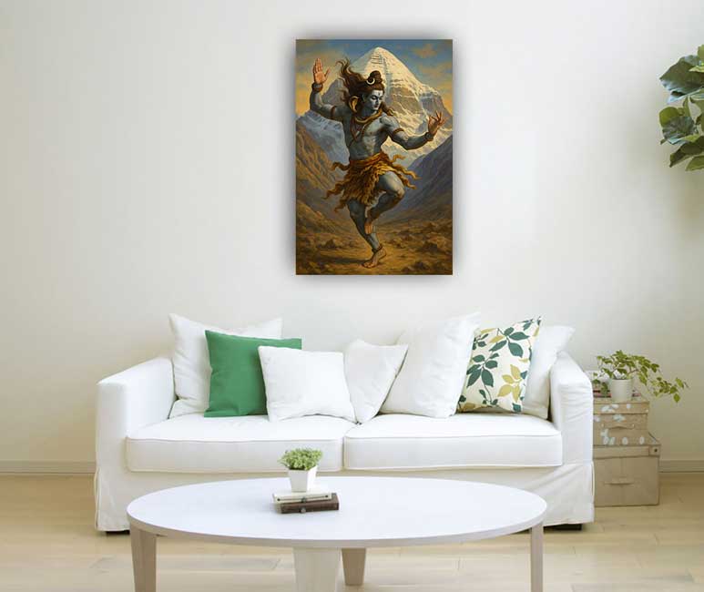 This painting is not just an artistic piece but a symbol of strength, transformation, and spiritual awakening. It reminds viewers of the power of rhythm, balance, and the divine force that governs both destruction and renewal. Ideal for meditation spaces, yoga studios, or homes seeking spiritual energy and protection, the Lord Shiv Tandav painting invites courage, clarity, and dynamic change into your space.