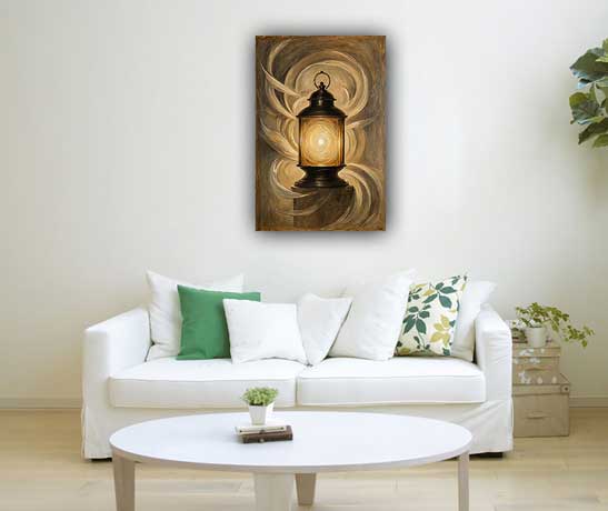 Radiant Lantern Painting on Canvas Symbol of Guidance and Inner Light