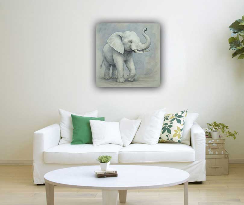 White Elephant Artwork on Canvas for Wealth & Security