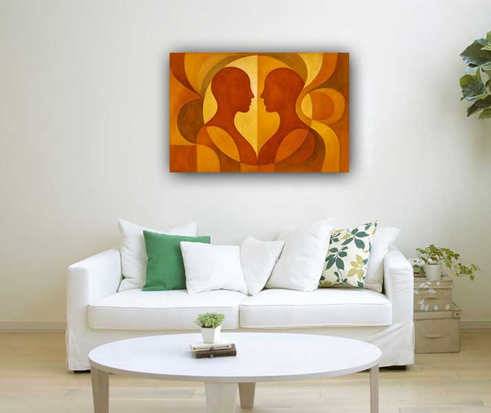 Abstract wall art for couples to deepen emotional bonds and promote harmony. Southwest placement recommended.