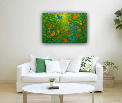 Vastu-compliant garden canvas painting for East wall. Symbolizes health and growth. Premium modern wall art for home and office décor.