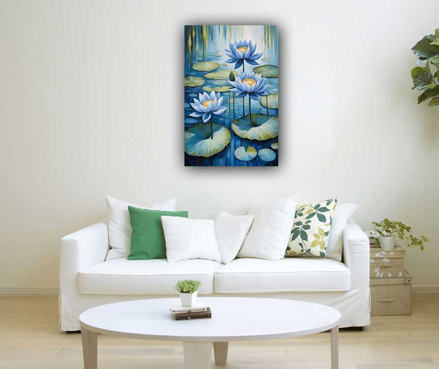 Bring financial stability and prosperity with this Blue Lotus Pond Painting, designed as per Vastu to enhance profits and savings when placed in the West direction. Perfect for homes & offices.