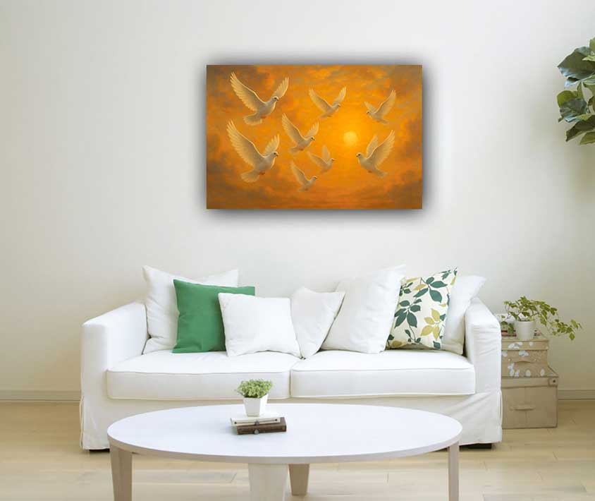 Bring freedom, creativity, and innovation into your space with this Flying Birds Painting designed as per vastu principles for the West direction. Birds in flight symbolize limitless imagination, new ideas, and progress, making it the perfect choice for students, professionals, and artists.