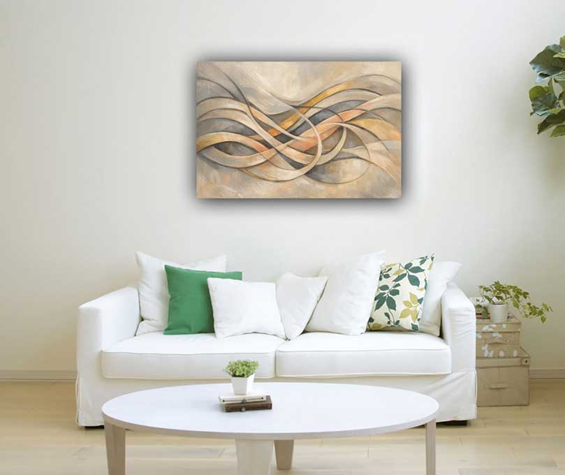 This abstract painting features complex flowing lines and layered textures in neutral and warm tones, representing continuous thought, imagination, and creative expansion. The overlapping curves symbolize multiple ideas evolving simultaneously, making it ideal for stimulating inventive thinking. Perfect for modern interiors and creative environments, it enhances focus and innovation. As a vastu painting, it supports positive energy movement, clarity, and mental expansion. Ideal as wall art, canvas wall art, or modern canvas prints, it adds depth and contemporary elegance to your space.