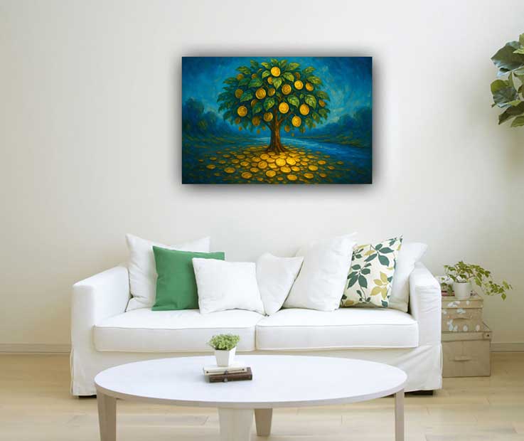 Money tree in north direction for steady income and financial flow—perfect vastu wall art.