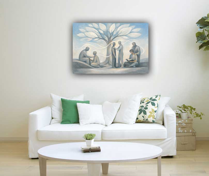 This inspiring artwork on canvas portrays a mentor guiding a protégé, symbolizing wisdom, learning, and growth. Ideal for offices and study spaces, this modern canvas print enhances career development and supportive relationships. As a vastu painting, it strengthens guidance and success pathways.