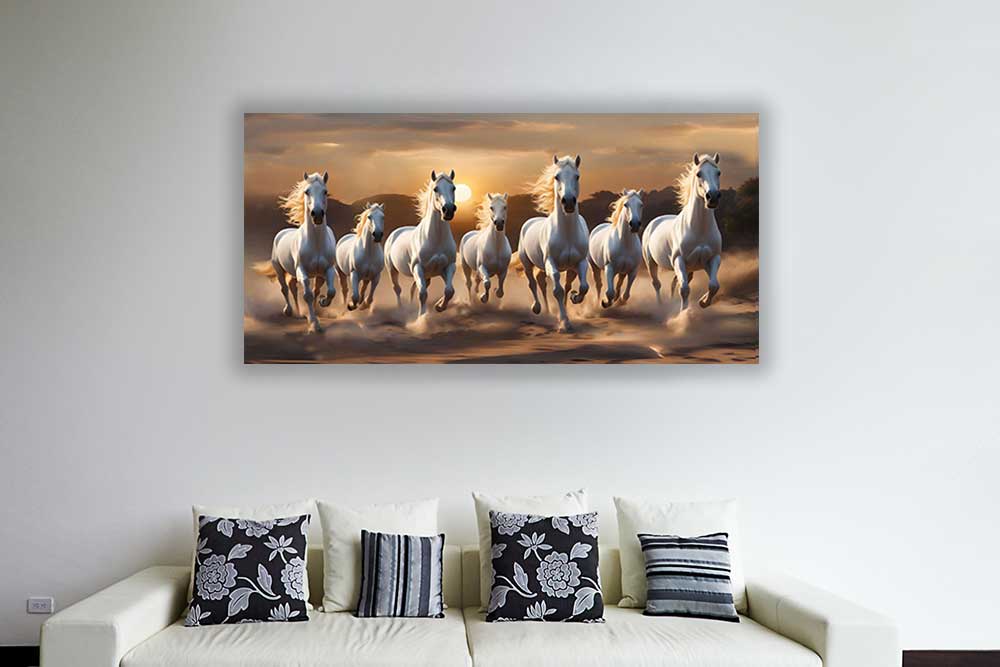 Vastu Seven Horse Painting has a great significance. Horses, in Vaastu, represent success and power. A Seven Horse Painting in your home/office-