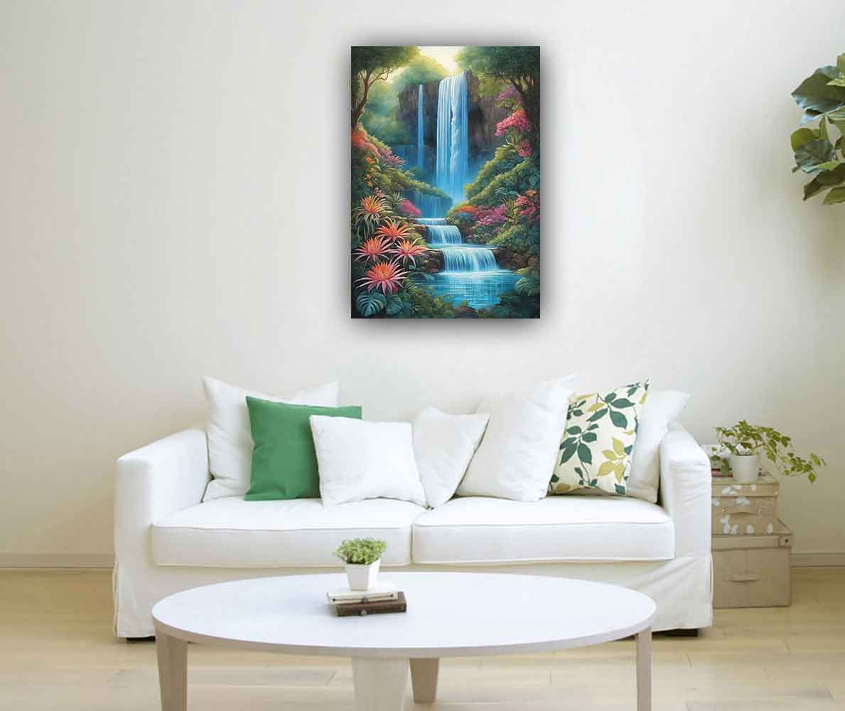 Embrace the harmonious flow of nature with a waterfall painting, a symbol of tranquility and abundance in both Vastu and Feng Shui practices. According to Vastu principles, placing a waterfall painting in the north or northeast direction of your home or office can enhance wealth and prosperity, as these directions are associated with abundance and positive energy flow. In Feng Shui, a waterfall painting represents the flow of Chi, bringing vitality and prosperity into your space. Whether you're seeking to balance energies, invite prosperity, or simply create a sense of calm, a waterfall painting is a timeless addition to any environment. Explore our collection and invite the soothing essence of cascading water into your life today.