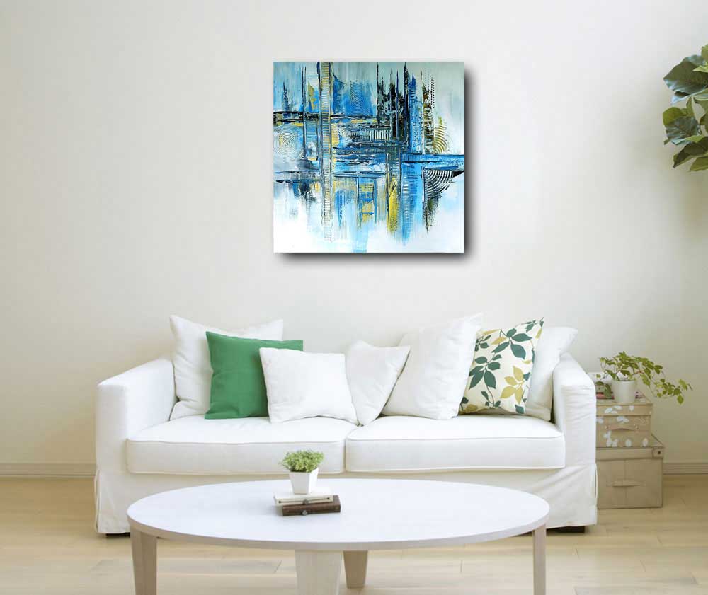 Abstract paintings with fluid and flowing patterns, especially in predominant blue and green tones, are excellent choices for enhancing the energy in your career space according to vastu principles. These colors symbolize tranquility, growth, and harmony, creating a conducive environment for productivity and success. The fluid patterns evoke a sense of movement and dynamism, reflecting the ever-evolving nature of your career.