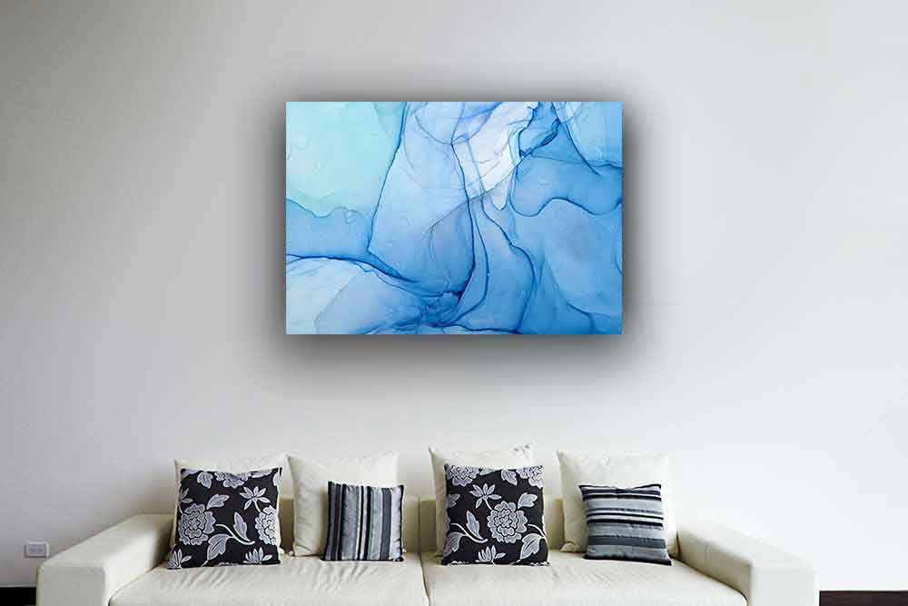 Abstract Paintings for North - Fluid and Flowing Patterns: Abstract paintings with fluid and flowing patterns in predominant blue and green tones(vastu) or paintings with flowing lines in blue and black(fenghui) represent the constant flow of positive energy into your career space