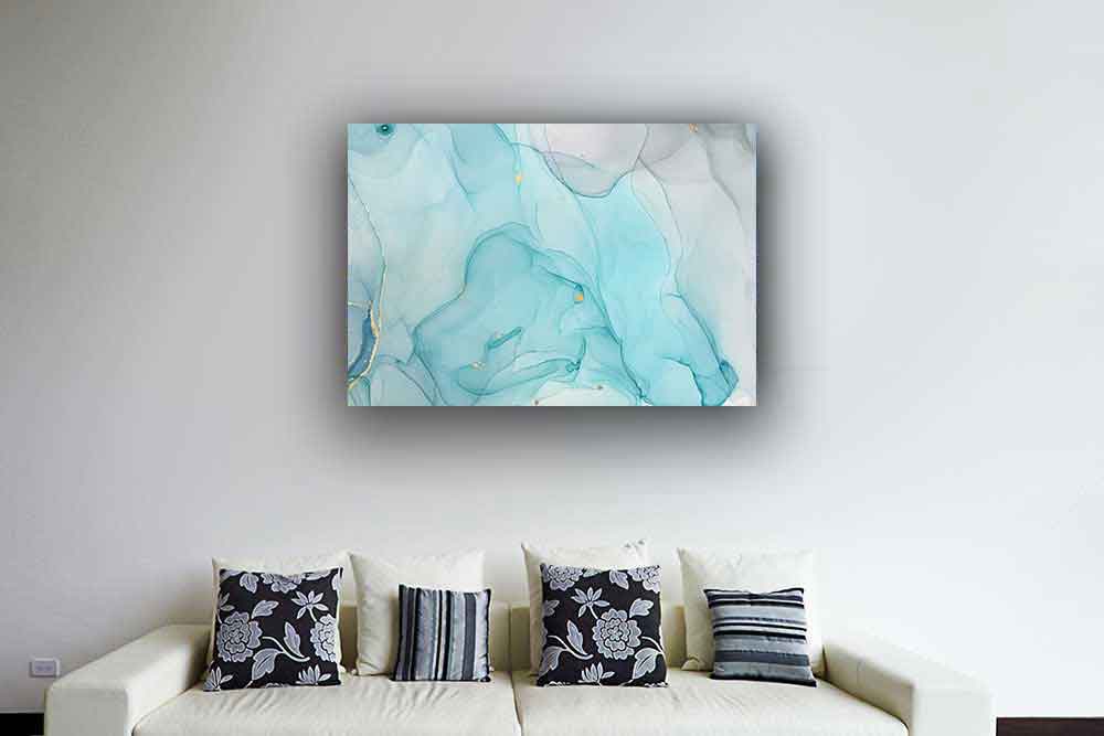 Abstract Paintings for North - Fluid and Flowing Patterns: Abstract paintings with fluid and flowing patterns in predominant blue and green tones(vastu) or paintings with flowing lines in blue and black(fenghui) represent the constant flow of positive energy into your career space