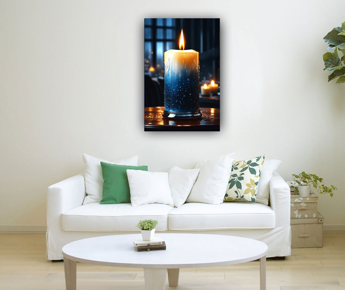 Candles symbolize the flickering essence of passion and energy, illuminating spaces with their warm glow and inviting ambiance. In both Vastu and Feng Shui traditions, candles serve as potent symbols for enhancing vitality, romance, and dynamism within a space. The South is traditionally associated with passion, ambition, and fame, making it an ideal placement to amplify the painting's energetic properties.