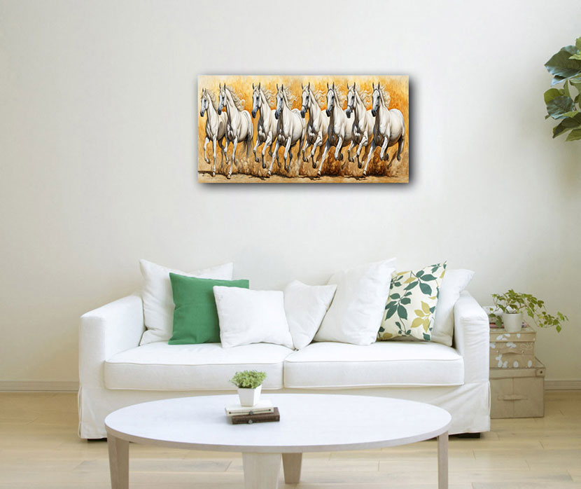The captivating 8 horses painting depicts a scene of power, movement, and grace as eight majestic horses gallop together in unison. In the realm of Feng Shui, each horse symbolizes key attributes essential for achieving fame, recognition, and success. These attributes include strength, perseverance, determination, and unity.