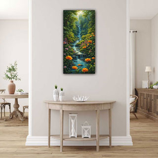 In Vastu Shastra, an ancient Indian architectural philosophy, waterfalls symbolize abundance, prosperity, and the flow of positive energy. Placing a waterfall painting in the north or northeast direction of a home or office is believed to attract wealth and financial success. The flowing water in the painting represents the constant flow of opportunities and resources into one's life.