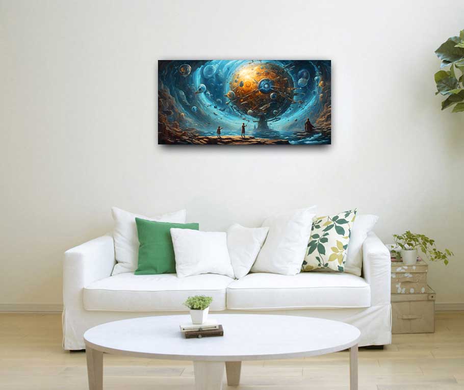 Discover the symbolic painting of technological innovation designed for Aquarians. Embrace the fusion of futuristic art and visionary creativity tailored to the innovative spirit of Aquarius. Perfect for those who see the future today