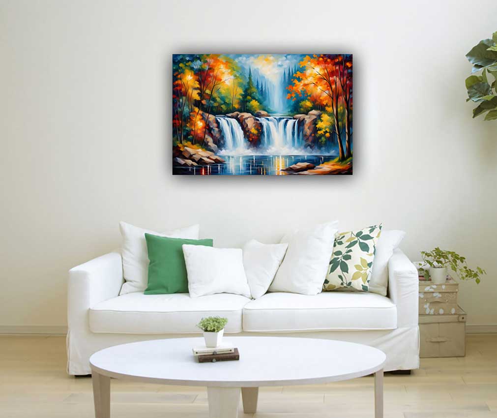 According to Vastu Shastra, the North direction is governed by the water element and is linked to career and professional success. Placing a waterfall painting on the North wall of your home or office helps activate and amplify the energy in this area, encouraging the flow of new opportunities and career advancement. This placement ensures that the positive vibrations of the waterfall align with the natural energy of the North, promoting a steady and successful career path. Explore beautiful collection of waterfall painting Click Here