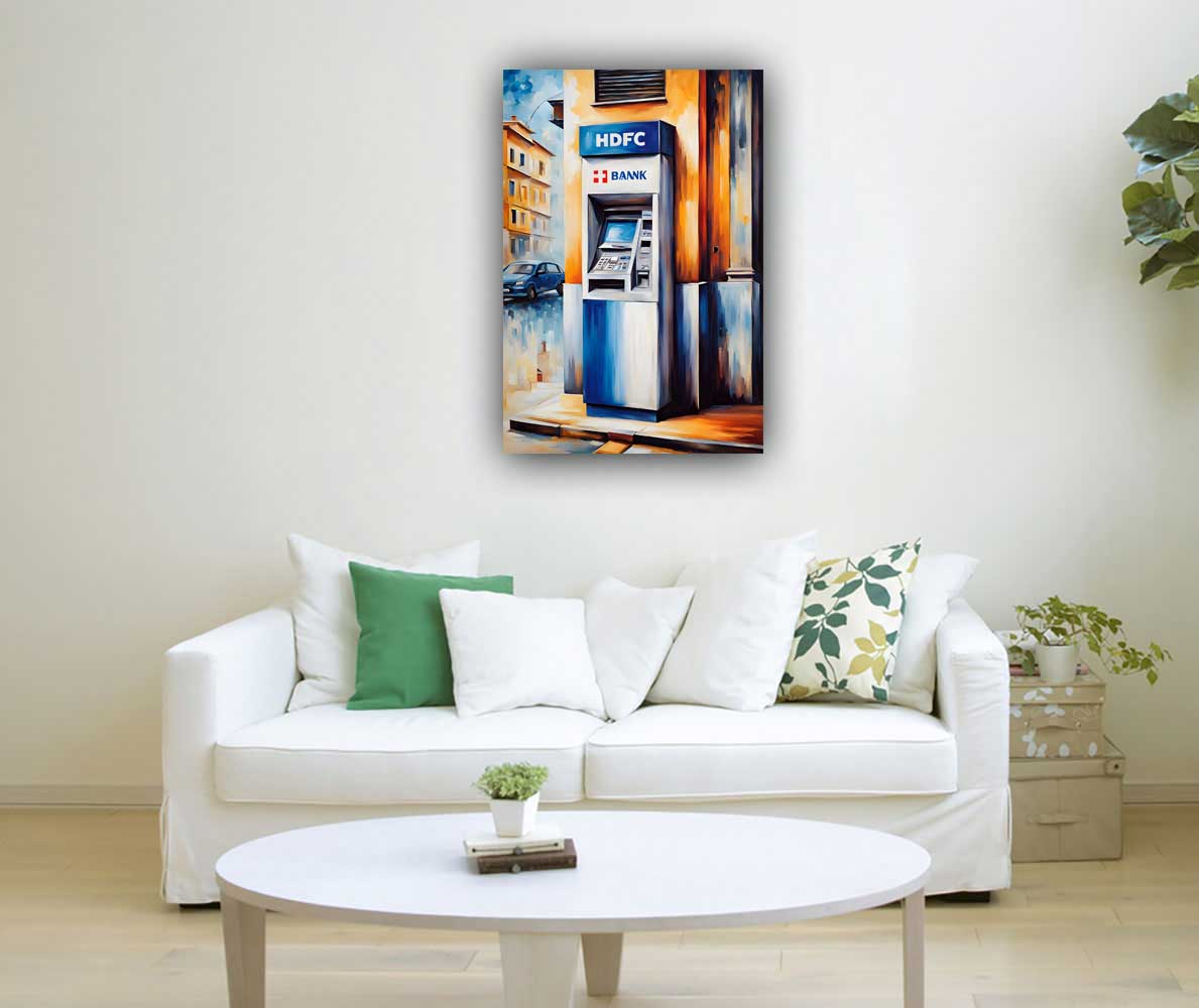 A painting of a bank ATM placed in the West direction symbolizes instant access to money, financial security, and consistent cash flow. The ATM, as a modern representation of financial accessibility, signifies the ease and availability of funds, making it a powerful symbol for attracting prosperity.