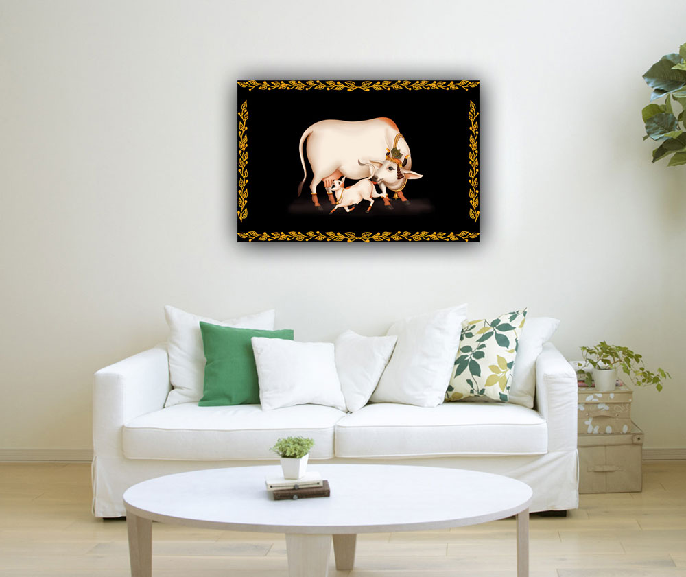 Kamadhenu, as it is called, is the most sacred animal according to Hindu culture. Kamadhenu is a divine cow originally residing in heaven. It appeared from the ocean during the ‘churning of the seas’. According to Hindu scriptures, Kamadhenu can fulfil all your wishes. Therefore, Vastu Shastra envisages keeping a Kamadhenu Painting at home or office -