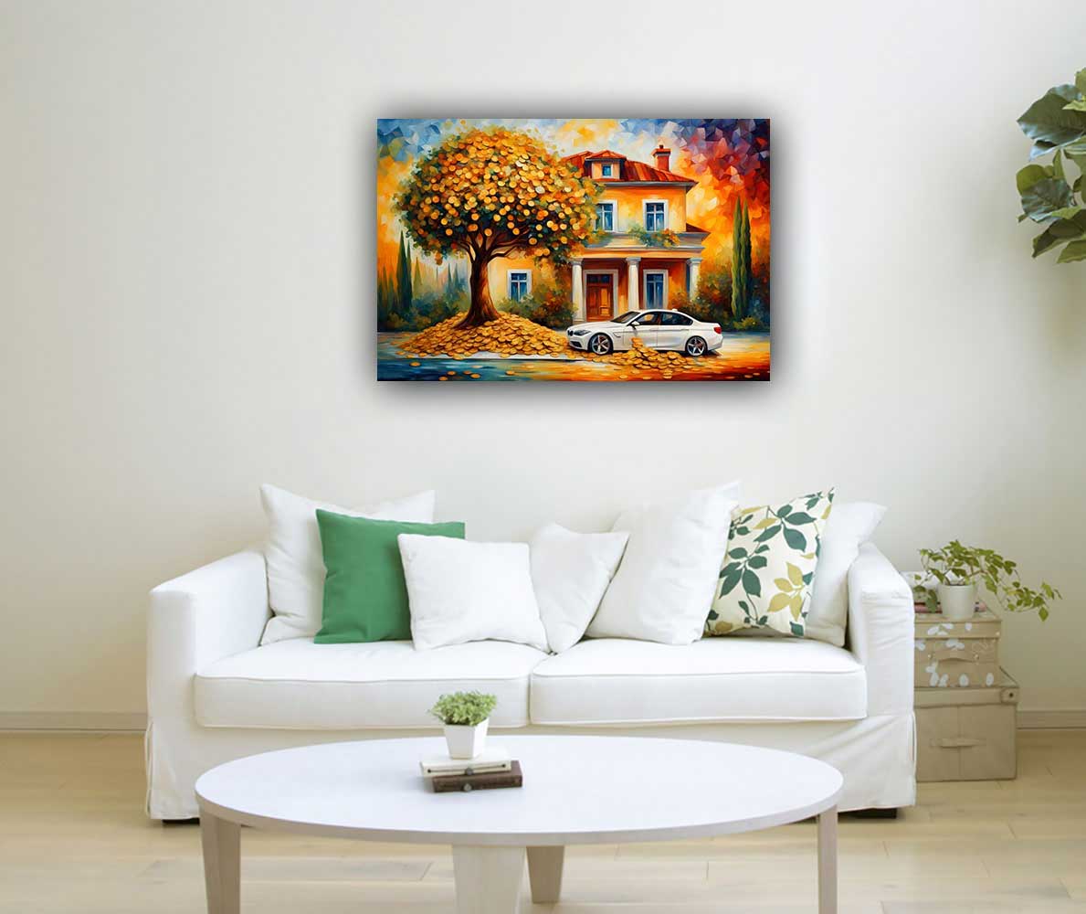 Manifest Money by visualizing a gold coin tree, a luxurious car, and a villa to represent ultimate financial success and abundance. The gold coin tree symbolizes ongoing prosperity and growth, while the luxurious car denotes high status and achievement. The villa represents ultimate comfort and a high standard of living. Together, these powerful symbols create a vivid image of wealth and success, helping you align your thoughts and actions with your financial goals and attract the abundance you desire.