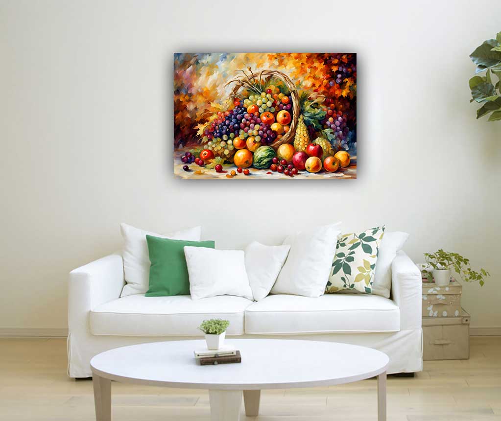 In this vibrant depiction, ripe apples, plump grapes, golden ears of corn, and luscious pomegranates spill forth from the Cornucopia in a mesmerizing cascade of colors and textures. Each element represents the richness of the Earth's bounty and the endless possibilities for prosperity and sustenance.