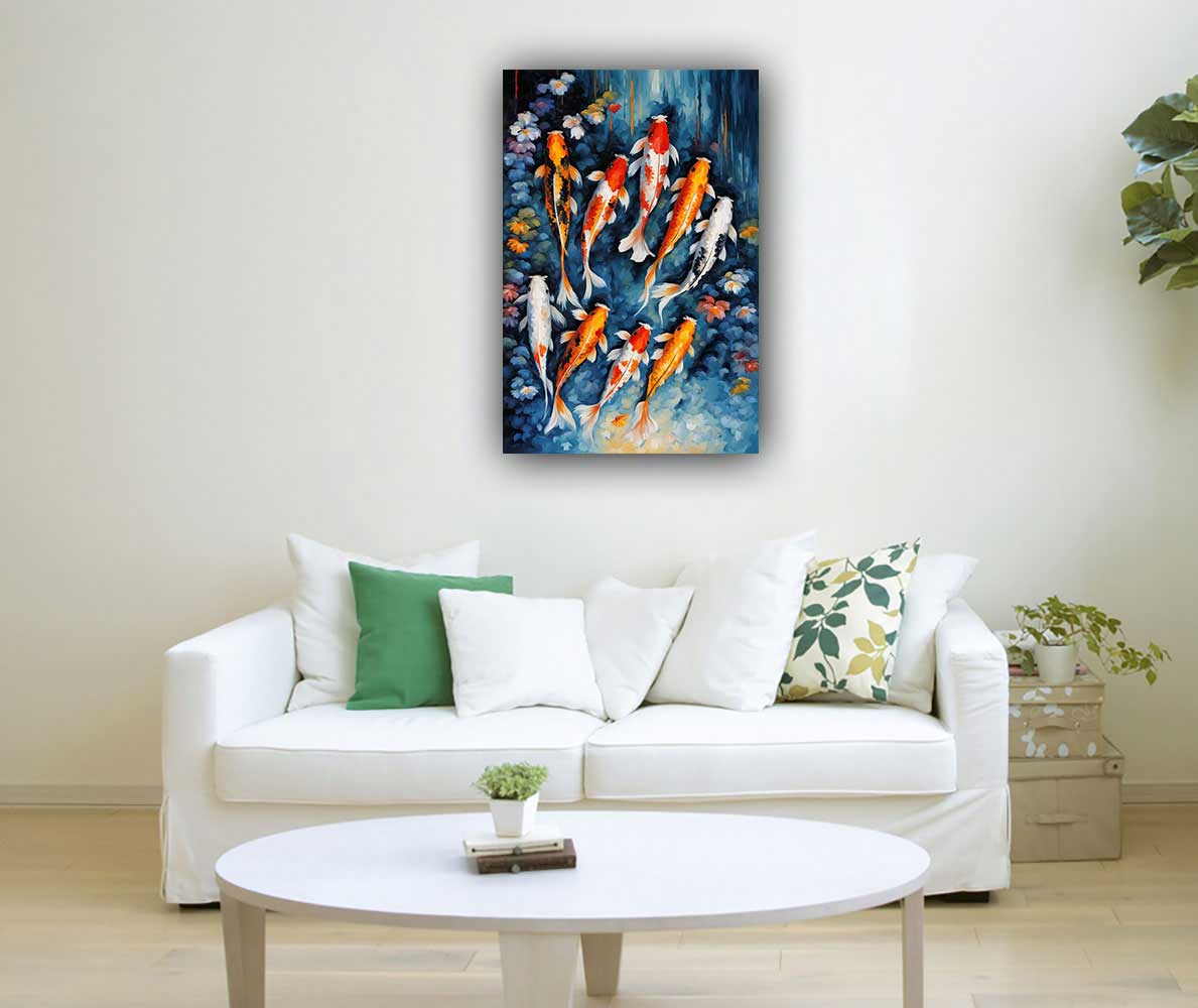 In Feng Shui, a Koi Fish painting symbolizes wealth, success, and the power to overcome obstacles in life, career, and business. Known for its resilience, the Koi Fish represents strength and determination. Placing it in the North boosts career opportunities, while in the South-East, it enhances financial success. This painting brings prosperity, personal growth, and harmony to any space.