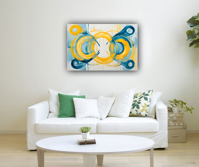 Boost social connection, networking, and communication with this abstract painting featuring circular shapes. Perfect for the northwest direction, it enhances relationships and interaction as per Vastu Shastra. Ideal for living rooms and offices.