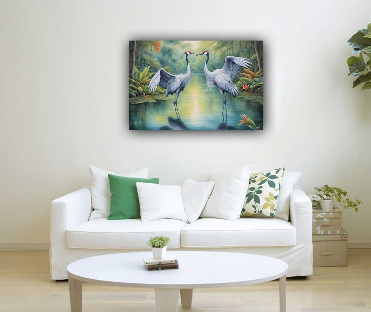 Enhancement of Peace and Serenity: The serene and graceful nature of cranes promotes peace and tranquility. A pair of cranes painting can create a calming atmosphere, reducing stress and encouraging a peaceful environment conducive to relaxation and reflection.