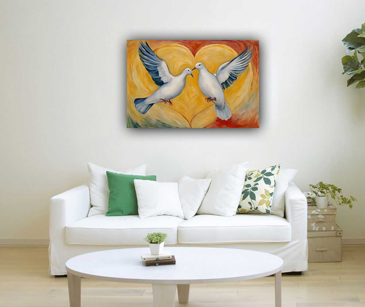 A Pair of Dove painting placed in the South West direction symbolizes love, peace, and fidelity. Doves, known for their gentle nature and monogamous behavior, represent deep emotional connections and enduring affection. The yellow color associated with this direction further amplifies the painting’s impact, promoting a nurturing and harmonious environment.