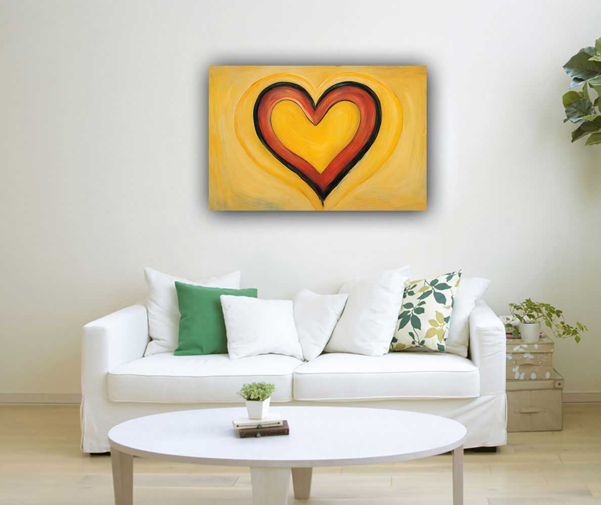 A Heart painting placed in the South West direction symbolizes love and emotional connection. The Heart, a universal emblem of affection and intimacy, aligns perfectly with the energies of this direction. The yellow color enhances the painting’s significance, promoting warmth, harmony, and positive energy in relationships.