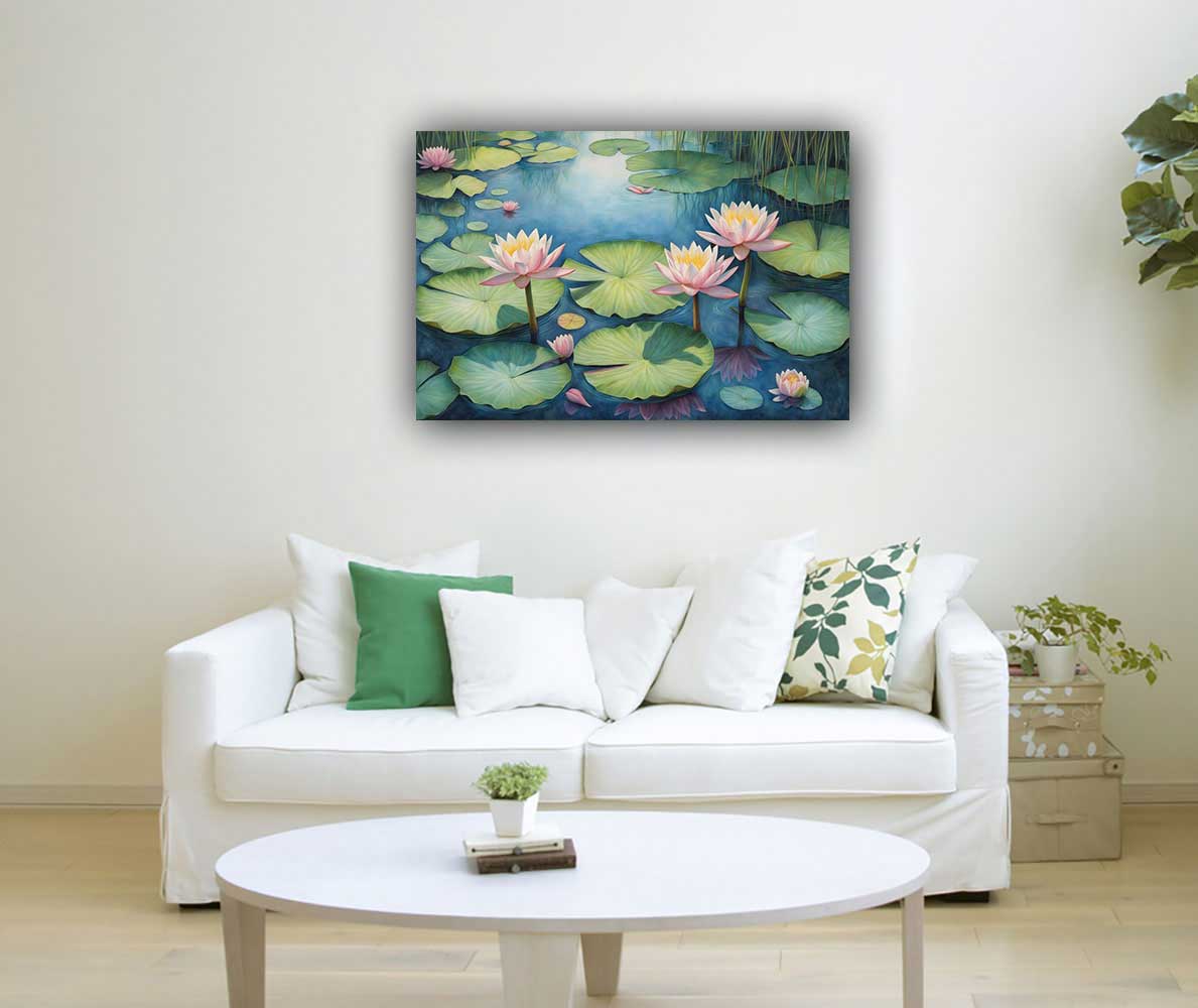 Enhance your health and well-being with a Waterlily painting, ideal for the northeast direction as per Vastu. This artwork promotes mental clarity, emotional balance, and healing energy flow in your space.