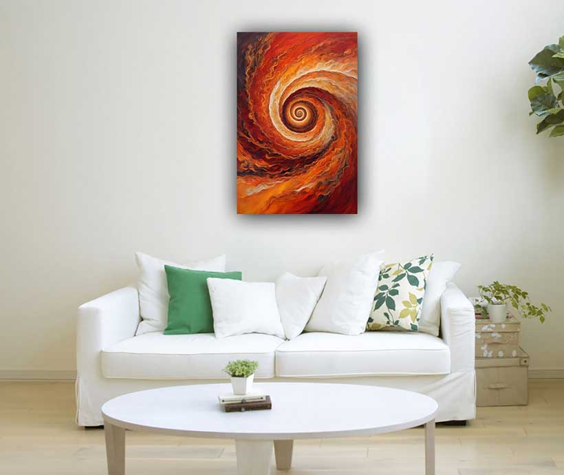 Discover the Abstract Swirls of Prosperity painting in vibrant red and orange hues. Perfect for the southeast direction, this artwork enhances wealth, finance, and abundance as per Vastu principles. Ideal for homes and offices.