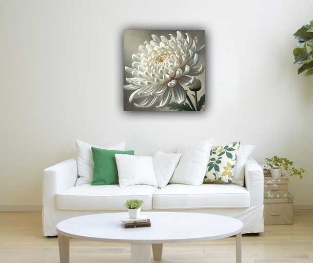 Floral Chrysanthemum Painting Canvas Art for West Wall Energy