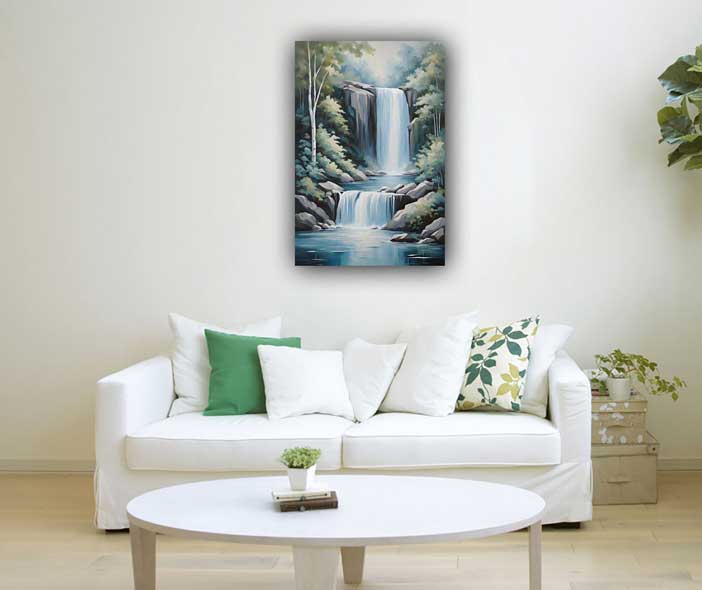 Discover the perfect Vastu-inspired waterfall painting for the North direction. Enhance financial growth, prosperity, and the flow of opportunities with this stunning artwork designed for harmony and abundance. Ideal for homes and offices.