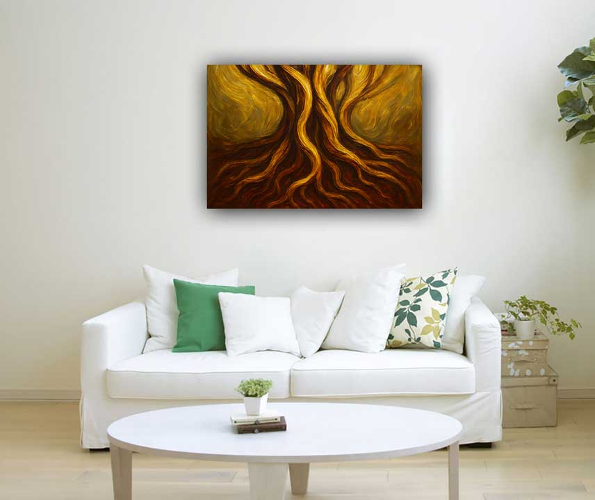 A powerful abstract canvas painting of intertwined roots, symbolizing deep grounding, stability, and inner strength. Ideal for the Southwest wall as per Vastu, this modern artwork enhances security, resilience, and connection in your space.