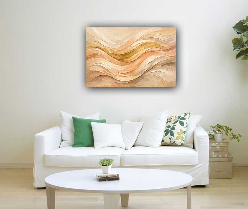 This abstract painting features rich flowing textures in warm beige, cream, and golden tones, creating a natural wave-like movement across the canvas. The layered strokes symbolize continuous thought, intuition, and creative flow. Ideal for modern homes and workspaces, it encourages imaginative thinking and emotional balance. As a vastu painting, it promotes smooth energy circulation, mental clarity, and innovative ideas. Perfect as wall art, canvas wall art, or modern canvas prints, it brings warmth and artistic depth to your décor.