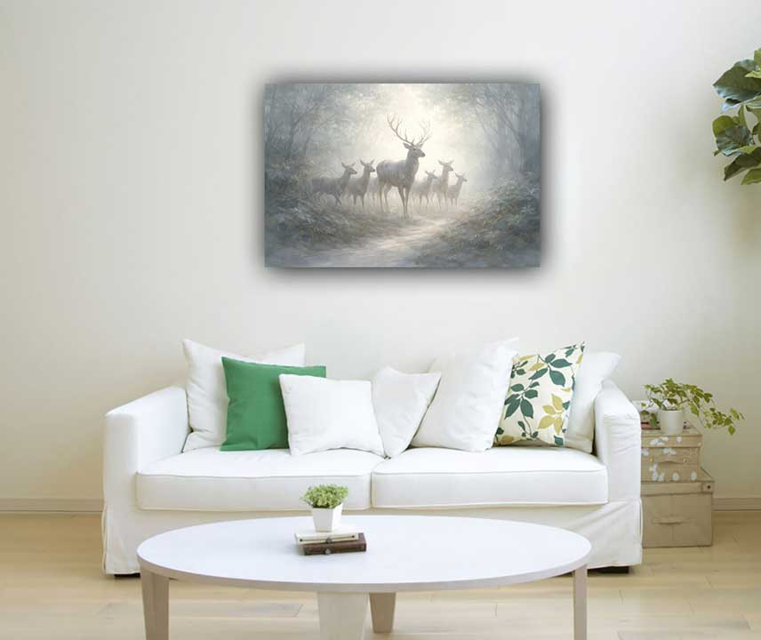 Peaceful deer painting in northwest enhancing harmony and community support.