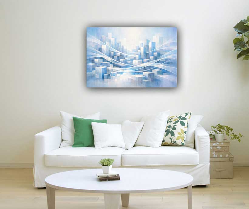 This striking abstract artwork on canvas captures the rhythm and movement of a bustling city skyline with flowing lights, geometric forms, and dynamic street energy. Designed to symbolize connectivity, networking, and expanding opportunities, this piece is ideal as vastu paintings for the North-West direction. The modern composition enhances social interactions, business growth, and professional success while adding a sophisticated edge to your décor. Perfect as wall art, canvas wall art, canvas paintings, and modern canvas prints for offices, living rooms, and workspaces.