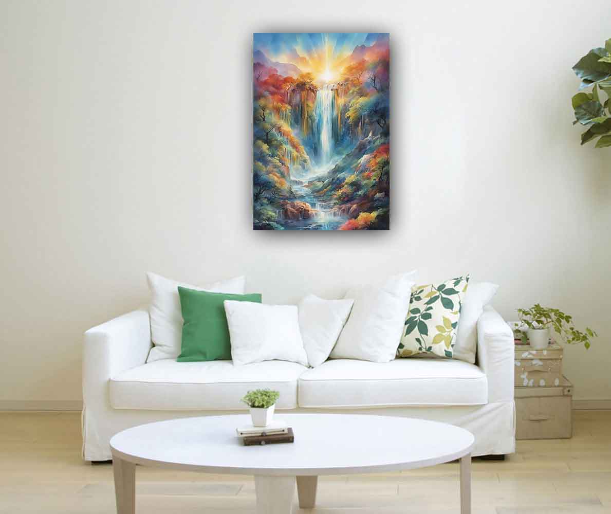 Invite prosperity and tranquility with the soothing flow of a waterfall painting.