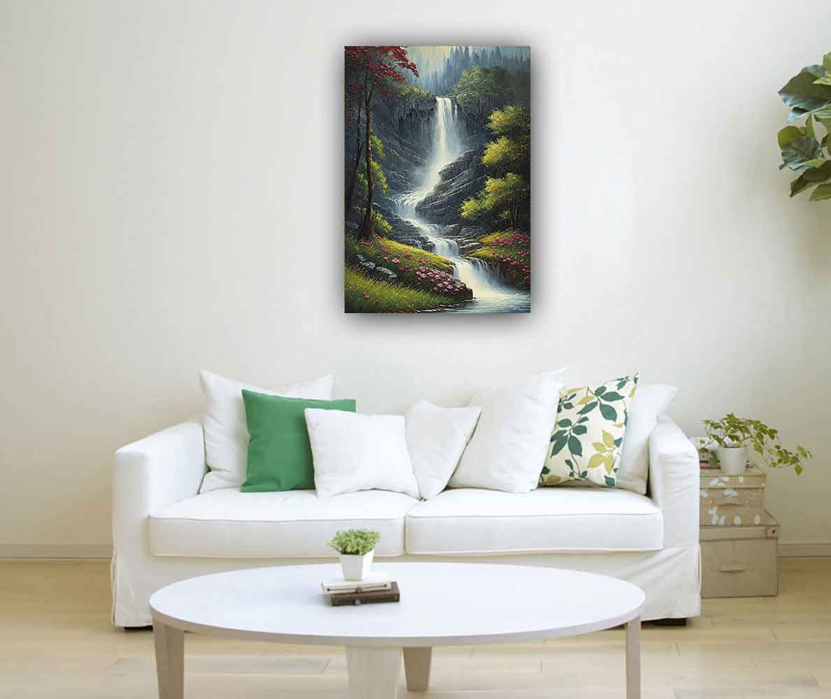 Waterfall Canvas Painting: Channeling Wealth and Prosperity with Free Flow of Money